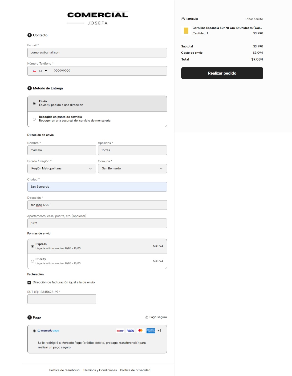 Resumen del pedido