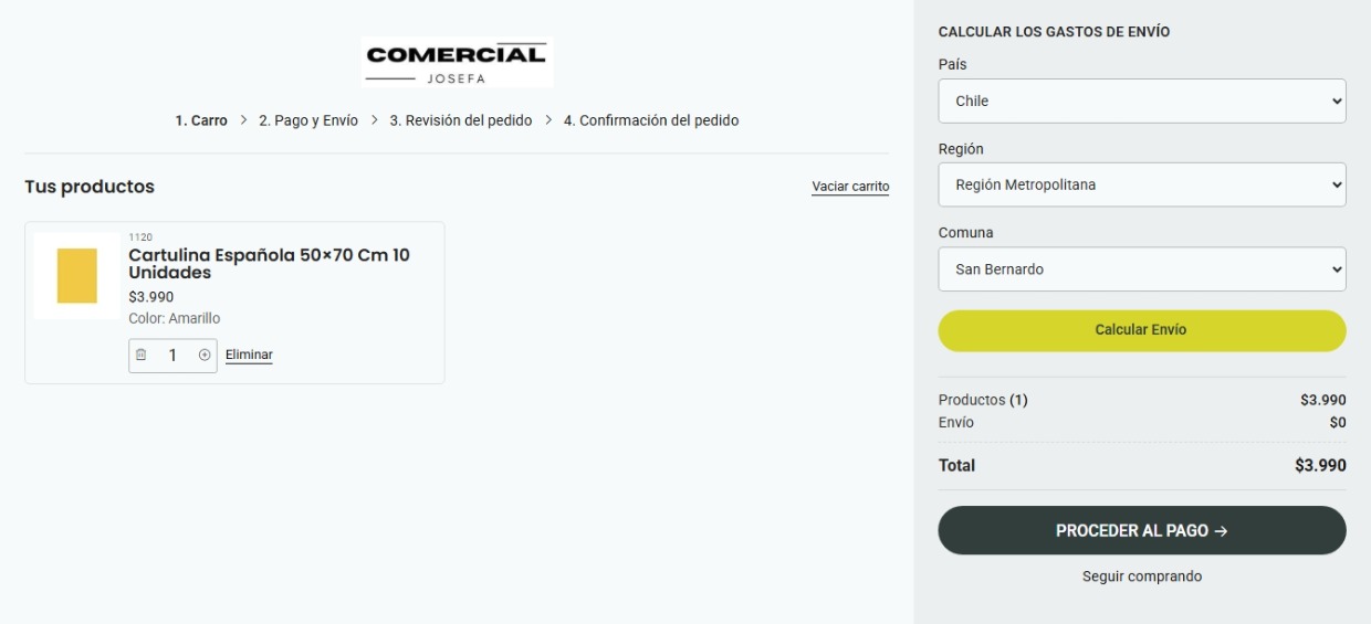 Los costos de envío serán calculados al momento de pagar.